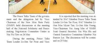 နိုင်ငံတော်၏ငြိမ်းချမ်းရေးဆွေးနွေးရေးအဖွဲ့နှင့် မွန်ပြည်သစ်ပါတီ (NMSP) ဒုတိယဥက္က