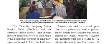 တပ်မတော်ပင်လယ်သွားဆေးရုံရေယာဉ်(သံလွင်)မှ နယ်လှည့်အထူးကုဆေးအဖွဲ့ ကော့ သောင်းမြို့