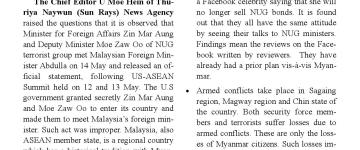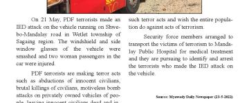 အကြမ်းဖက်အုပ်စုအဖြစ်ကြေညာထားသော CRPH၊ NUG နှင့် ယင်းတို့၏ လက်ဝေခံများ၏ လှုံ့ဆော်