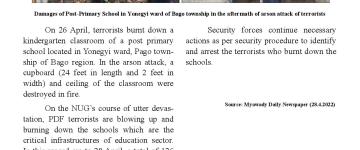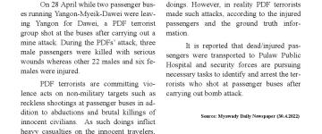 အကြမ်းဖက်အုပ်စုအဖြစ်ကြေညာထားသော CRPH၊ NUG နှင့် ယင်းတို့၏ လက်ဝေခံများ၏ လှုံ့ဆော်