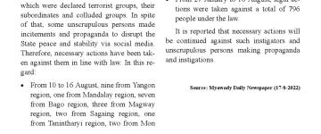 အကြမ်းဖက်အုပ်စုအဖြစ်ကြေညာထားသော CRPH၊ NUG နှင့် ၎င်းတို့၏ လက်ဝေခံများ၏ လှုံ့ဆော်