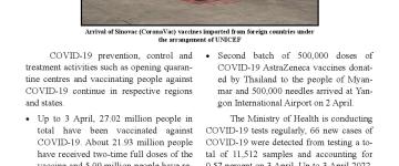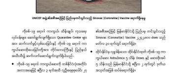 တိုင်းဒေသကြီးနှင့်ပြည်နယ်များ၌ ကိုဗစ်- ၁၉ ရောဂါ ကာကွယ်ဆေးများ ဆက်လက် ထိုးနှံ နေ