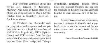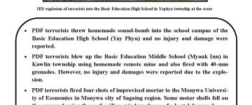 PDF အမည်ခံ အကြမ်းဖက်သမားများက အခြေခံပညာကျောင်းများအား လက်လုပ်မိုင်းများဖြင့် နှေ