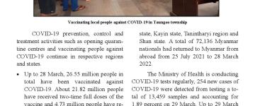 တိုင်းဒေသကြီးနှင့်ပြည်နယ်များ၌ ကိုဗစ်- ၁၉ ရောဂါ ကာကွယ်ဆေးများ ဆက်လက် ထိုးနှံ နေ