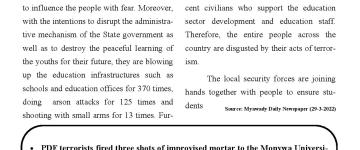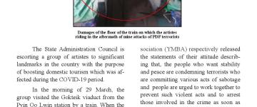 အနုပညာရှင်များစီးနင်းလိုက်ပါလာသည့် မီးရထားကို PDF အမည်ခံ အကြမ်းဖက်သမားများ က မို