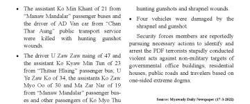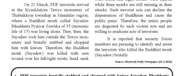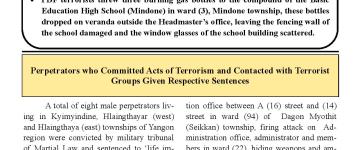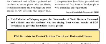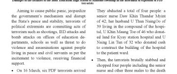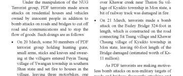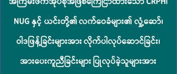 အကြမ်းဖက်အုပ်စုအဖြစ်ကြေငြာထားသော CRPH၊ NUG နှင့် ယင်းတို့၏ လက်ဝေခံများ၏ လှုံ့ဆော