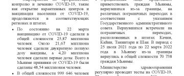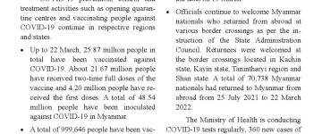 တိုင်းဒေသကြီးနှင့်ပြည်နယ်များ၌ ကိုဗစ်- ၁၉ ရောဂါ ကာကွယ်ဆေးများ ဆက်လက် ထိုးနှံ