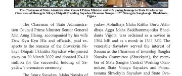 နိုင်ငံတော်စီမံအုပ်ချုပ်ရေးကောင်စီ၊ သတင်းထုတ်ပြန်ရေးအဖွဲ့ (၁၂)ကြိမ်မြောက် သတင်းစ