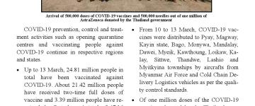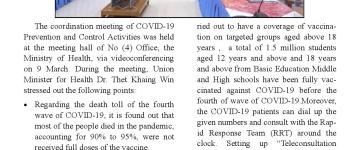 တိုင်းဒေသကြီးနှင့်ပြည်နယ်များ၌ ကိုဗစ်- ၁၉ ရောဂါ ကာကွယ်ဆေးများ ဆက်လက် ထိုးနှံ နေ