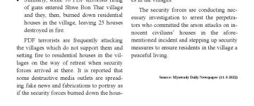 မကွေးတိုင်းဒေသကြီး၊ ရေစကြိုမြို့နယ်အတွင်း PDF အကြမ်းဖက်သမားများမှ ဒေသခံ ကျေးရွာ