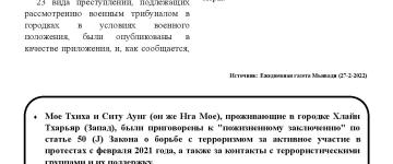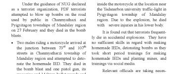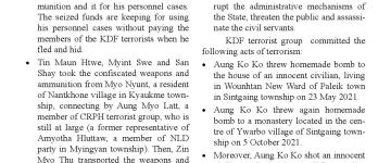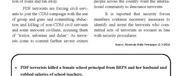 အကြမ်းဖက်အုပ်စုအဖြစ်ကြေငြာထားသော CRPH၊ NUG နှင့် ယင်းတို့၏ လက်ဝေခံများ၏ လှုံ့ဆော