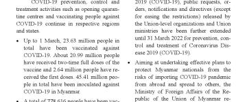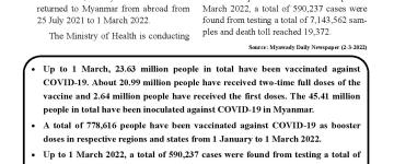တိုင်းဒေသကြီးနှင့်ပြည်နယ်များ၌ ကိုဗစ်- ၁၉ ရောဂါ ကာကွယ်ဆေးများ ဆက်လက် ထိုးနှံ