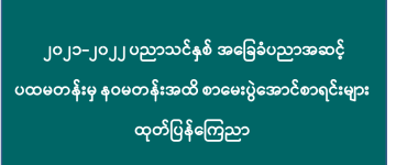 ၂၀၂၁-၂၀၂၂ ပညာသင်နှစ် အခြေခံပညာအဆင့် ပထမတန်းမှ နဝမတန်းအထိ စာမေးပွဲအောင်စာရင်းမျာ
