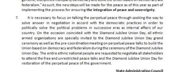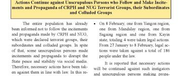 ပြည်ထောင်စုသမ္မတမြန်မာနိုင်ငံတော် နိုင်ငံတော်စီမံအုပ်ချုပ်ရေးကောင်စီ ကြေညာချက်အ