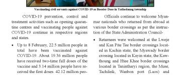 တိုင်းဒေသကြီးနှင့်ပြည်နယ်များ၌ ကိုဗစ်- ၁၉ ရောဂါ ကာကွယ်ဆေးများ ဆက်လက် ထိုးနှံ