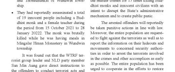 အကြမ်းဖက်အုပ်စုအဖြစ်ကြေငြာထားသော CRPH၊ NUG နှင့် ယင်းတို့၏ လက်ဝေခံများ၏ လှုံ့ဆော