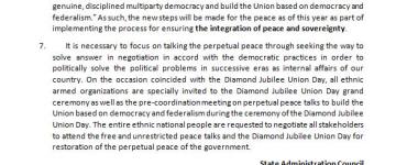 ပြည်ထောင်စုသမ္မတမြန်မာနိုင်ငံတော် နိုင်ငံတော်စီမံအုပ်ချုပ်ရေးကောင်စီ ကြေညာချက်အ
