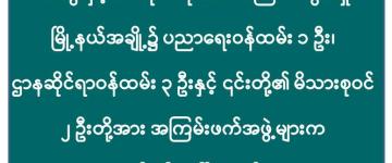 မကွေးနှင့် စစ်ကိုင်းတိုင်းဒေသကြီးအတွင်းရှိ မြို့နယ်အချို့၌ ပညာရေးဝန်ထမ်း ၁ ဦး၊ ဌ