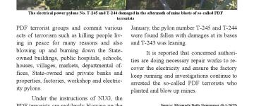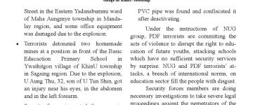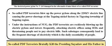 အကြမ်းဖက်သမားများ၏ မိုင်းထောင်ဖောက်ခွဲ ဖျက်ဆီးမှုများကြောင့် ဓာတ်အား လိုင်းတာဝါ