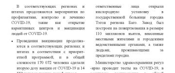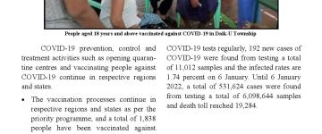 တိုင်းဒေသကြီးနှင့်ပြည်နယ်များ၌ ကိုဗစ်- ၁၉ ရောဂါ ကာကွယ်ဆေးများ ဆက်လက် ထိုးနှံ နေ
