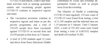 တိုင်းဒေသကြီးနှင့်ပြည်နယ်များ၌ ကိုဗစ်- ၁၉ ရောဂါ ကာကွယ်ဆေးများ ဆက်လက် ထိုးနှံ