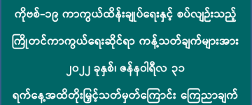 ကိုဗစ်-၁၉ ကာကွယ်ထိန်းချုပ်ရေးနှင့် စပ်လျဉ်းသည့် ကြိုတင်ကာကွယ်ရေးဆိုင်ရာ ကန့်သတ်ခ