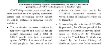 တိုင်းဒေသကြီးနှင့်ပြည်နယ်များသို့ ကိုဗစ်-၁၉ရောဂါကာကွယ်ဆေးများ ဆက်လက် ပို့ဆောင်