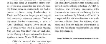 ပြည်ပနိုင်ငံများမှ ပြန်လည်ဝင်ရောက်လာသည့် မြန်မာနိုင်ငံသားများအားနယ်စပ်ဂိတ် အသီးသ