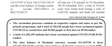 တိုင်းဒေသကြီးနှင့်ပြည်နယ်များ၌ ကိုဗစ်- ၁၉ ရောဂါ ကာကွယ်ဆေးများ ဆက်လက် ထိုးနှံ နေ