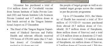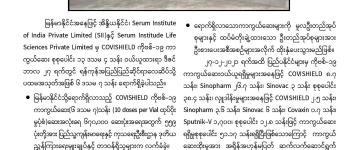 တိုင်းဒေသကြီးနှင့်ပြည်နယ်များ၌ ကိုဗစ်- ၁၉ ရောဂါ ကာကွယ်ဆေးများ ဆက်လက် ထိုးနှံ