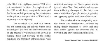 PDF အမည်ခံ အကြမ်းဖက်သူများ လုပ်ကြံသတ်ဖြတ်၍ မီးရှို့ဖျက်ဆီးခဲ့သော နေအိမ်၌ ကျန်ရှိ