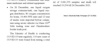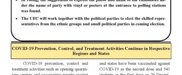 တိုင်းဒေသကြီးနှင့်ပြည်နယ်များ၌ ကိုဗစ်- ၁၉ ရောဂါ ကာကွယ်ဆေးများ ဆက်လက် ထိုးနှံ နေ