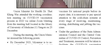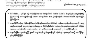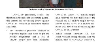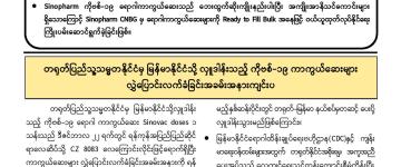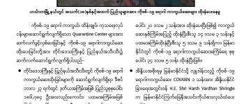 တိုင်းဒေသကြီးနှင့်ပြည်နယ်များ၌ ကိုဗစ်- ၁၉ ရောဂါ ကာကွယ်ဆေးများ ဆက်လက် ထိုးနှံ