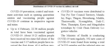 တိုင်းဒေသကြီးနှင့်ပြည်နယ်များ၌ ကိုဗစ်- ၁၉ ရောဂါ ကာကွယ်ဆေးများ ဆက်လက် ထိုးနှံ