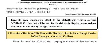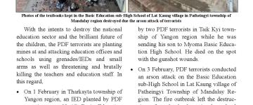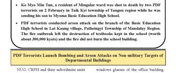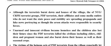 အကြမ်းဖက်အုပ်စုအဖြစ်ကြေငြာထားသော CRPH၊ NUG နှင့် ယင်းတို့၏ လက်ဝေခံများ၏ လှုံ့ဆော