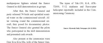 (၇၄)နှစ်မြောက် တပ်မတော်(လေ)နှစ်ပတ်လည်နေ့ အထိမ်းအမှတ်ဂုဏ်ပြုစစ်ရေးပြအခမ်းအနားနှင့