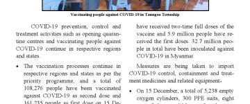 တိုင်းဒေသကြီးနှင့်ပြည်နယ်များ၌ ကိုဗစ်- ၁၉ ရောဂါ ကာကွယ်ဆေးများ ဆက်လက် ထိုးနှံ