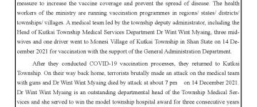 တန့်ဆည်မြို့နယ်၌ PDF အကြမ်းဖက်လက်နက်ကိုင်များ၏ ရက်စက်စွာ သေနတ်ဖြင့် ပစ်ခတ်သတ်ဖြတ