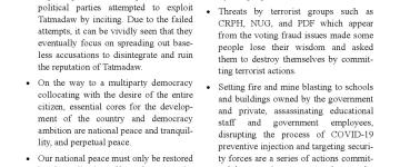 နိုင်ငံတော်စီမံအုပ်ချုပ်ရေးကောင်စီ သတင်းထုတ်ပြန်ချက် အကြောင်းအမျိုးမျိုးကြောင့