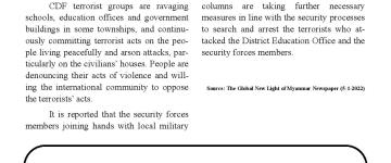 ရှမ်းပြည်နယ်(အရှေ့ပိုင်း)နှင့် ချင်းပြည်နယ်အတွင်း ဆောင်ရွက်လျက်ရှိသည့် ကိုဗစ်-၁၉