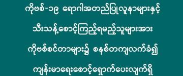 ကိုဗစ်-၁၉ ရောဂါအတည်ပြုလူနာများနှင့် သီးသန့်စောင့်ကြည့်ရမည့်သူများအား ကိုဗစ်စင်တ