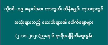 ကိုဗစ်-၁၉ ရောဂါအတည်ပြုလူနာများနှင့် သီးသန့်စောင့်ကြည့်ရမည့်သူများအား ကိုဗစ်စင်တာ