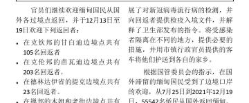 ပြည်ပနိုင်ငံများမှ ပြန်လည်ဝင်ရောက်လာသည့် မြန်မာနိုင်ငံသားများအားနယ်စပ်ဂိတ် အသီးသ
