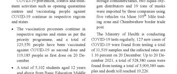 တိုင်းဒေသကြီးနှင့်ပြည်နယ်များ၌ ကိုဗစ်- ၁၉ ရောဂါ ကာကွယ်ဆေးများ ဆက်လက် ထိုးနှံ နေ