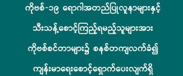 ကိုဗစ်-၁၉ ရောဂါအတည်ပြုလူနာများနှင့် သီးသန့်စောင့်ကြည့်ရမည့်သူများအား ကိုဗစ်စင်တ
