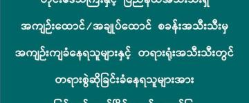 တိုင်းဒေသကြီးနှင့် ပြည်နယ်အသီးသီးရှိ အကျဉ်းထောင်/အချုပ်ထောင် စခန်းအသီးသီးမှ အကျဉ