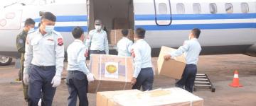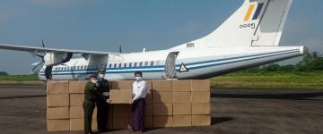 တိုင်းဒေသကြီးနှင့် ပြည်နယ်အသီးသီးသို့ ကိုဗစ်-၁၉ရောဂါ ကာကွယ်ဆေးများအား တပ်မတော်လေ