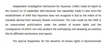Myanmar rejects politically motivated human rights mechanisms and their unprofes