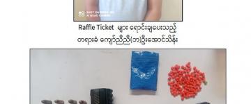 တရားမဝင် Raffle Ticket ရောင်းချနေသည့်တရားခံများအား လက်နက်/မူးယစ်ဆေးဝါးများနှင့်အ