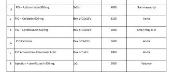 ရန်ကုန်တိုင်းဒေသကြီးအတွင်း ဆေးနှင့်ဆေးပစ္စည်းများ၊ အသား၊ ငါးများနှင့် စားသောက် က